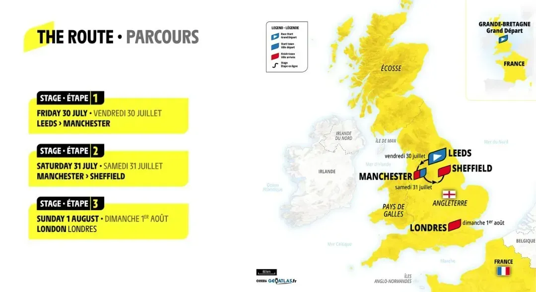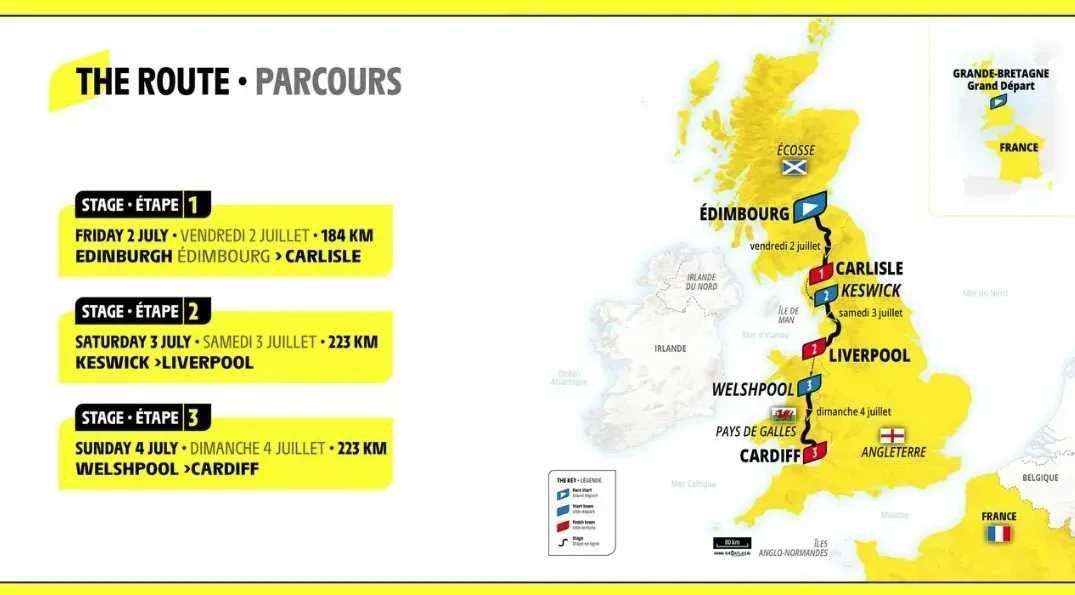 The men's race will consist of three stages covering approximately 630km across three nations. Tour de France